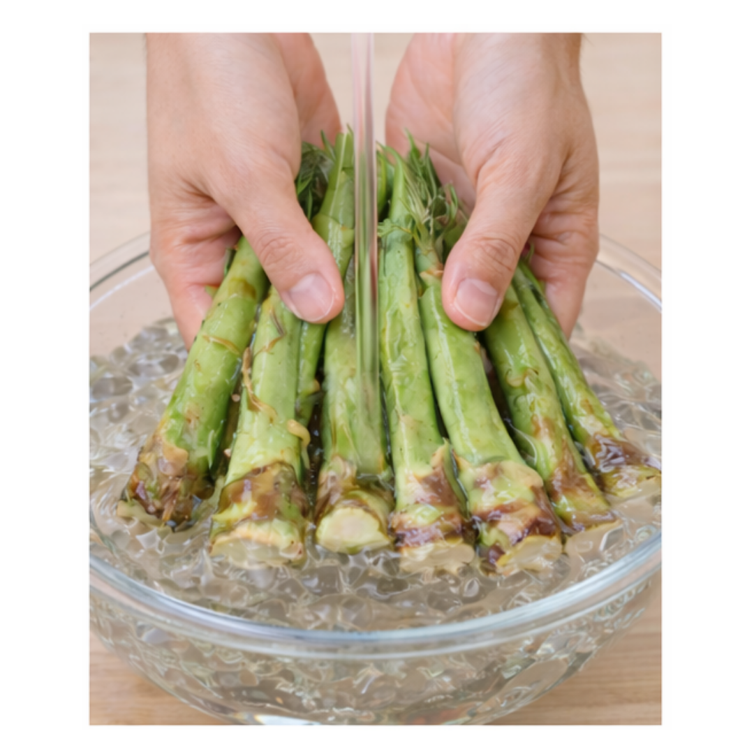 손질은 어렵지 않습니다. 먼저 가시가 있는 나뭇가지를 잘라내고, 밑동의 겉껍질을 떼어냅니다. 밑동이 굵은 경우에는 칼집을 깊게 넣어 골고루 익을 수 있게 준비한 뒤 씻어줍니다.끓는 물에 소금을 약간 넣고 30초~1분 정도 짧게 데친 후, 즉시 찬물에 담가 잔열을 빼주면 선명한 초록빛과 아삭한 식감을 살릴 수 있습니다.
